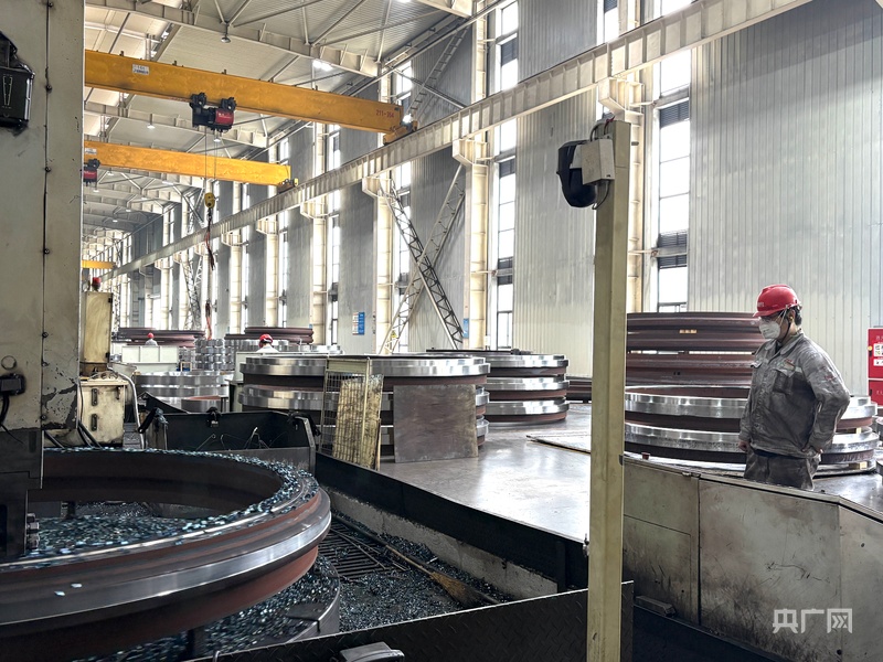 走进天马机械生产车间,巨大的机器正在忙碌作业,一个个超大轴承映入眼帘。天马机械销售总监范佳桥告诉记者,这些尺寸不同的轴承,现在广泛应用于风电板块与轨道交通板块中,作为相应产品的重要部件。